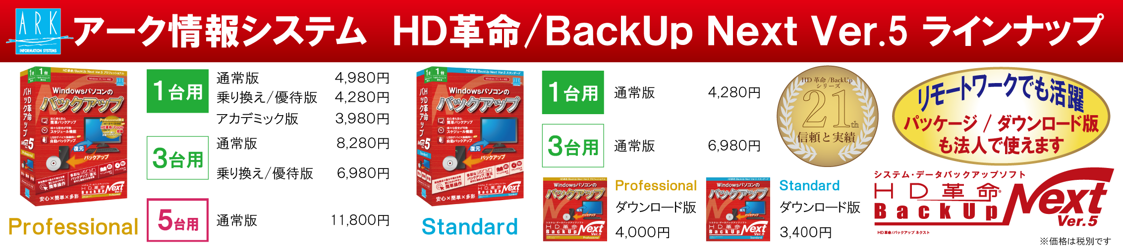 「HD革命」は株式会社アーク情報システムの登録商標です。「HD革命/BackUp Next Ver.5」「HD革命/Copie Ver.2」の著作権は株式会社アーク情報システムが有しています。