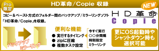 プロフェッショナル版はコピー&ペースト方式のフォルダー間のバックアップ/ミラーリングが出来る「HD革命/Copie」を収録しております。