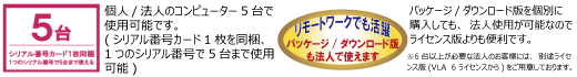 ただし、本ソフトウェアが「5台用」の場合は、1つのシリアル番号につき5台までコンピューターにインストールすることができます。