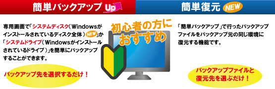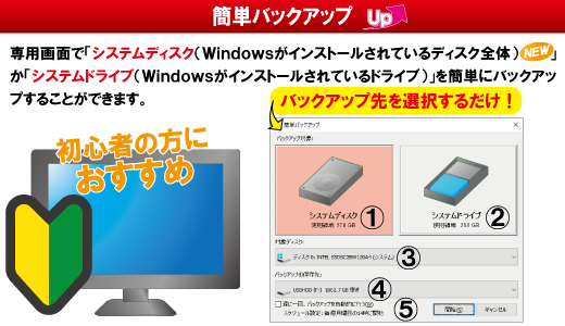 ◆Welcomeバックアップ画面を搭載 (専用画面でシステムディスクを丸ごとフルバックアップする機能)