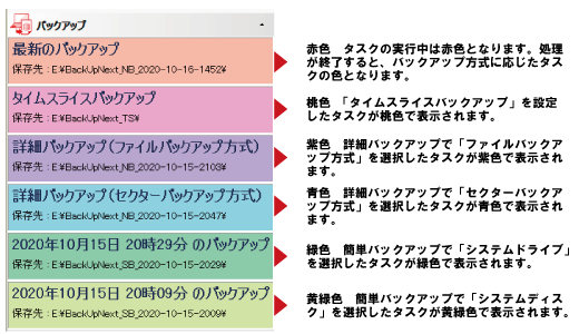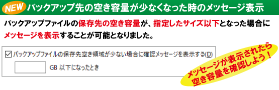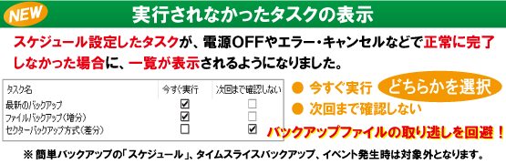 ◆バックアップ先の空き容量が少なくなった時のメッセージ表示や実行されなかったタスクの表示の追加。