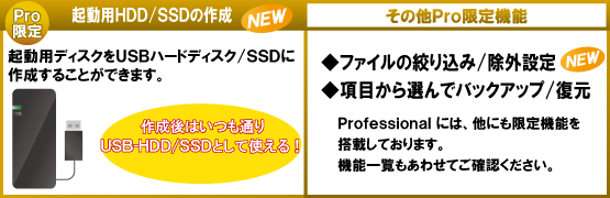 ◆Professional限定機能、起動用ハードディスク/SSDの作成機能追加。「HD革命/Copie 」を新たに収録。