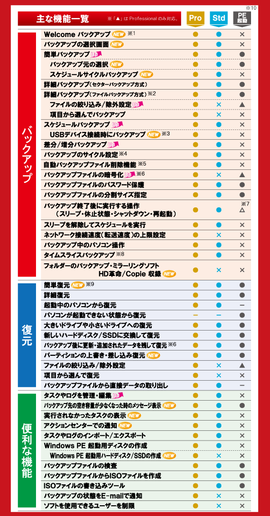 BackUp Next Ver.5のすべての機能が搭載されたラインナップです。
