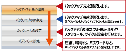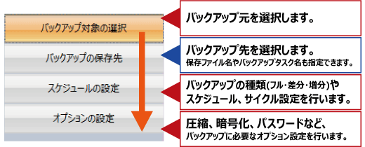 ※前バージョンで搭載していたバックアップ3WAYの機能はVer.5では搭載しておりません。