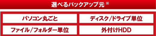 ※CD/DVD/BDメディアへバックアップを行うには、それぞれのメディアへの書き込みに対応したドライブが必要です。