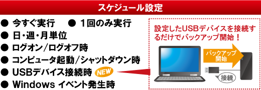 簡単バックアップ、スケジュール設定、差分/増分バックアップ、復元など便利な機能を搭載しております。難しい機能はいらない、お手軽にバックアップしたいというお客様にお勧めです。