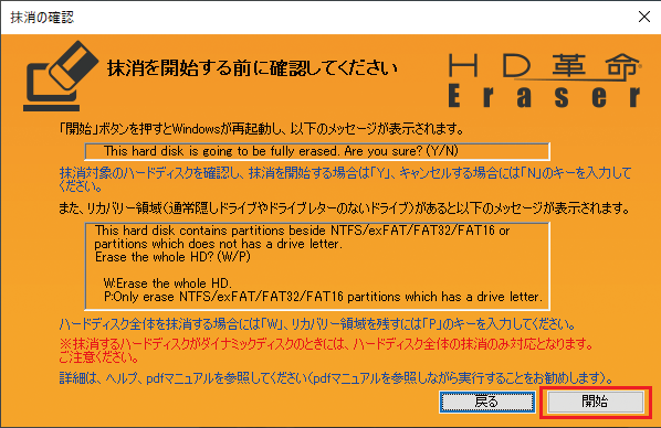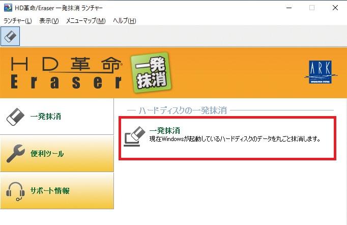 ※ 「HD革命/Eraser パソコン完全抹消」と同じ機能となりますので、「HD革命/Eraser パソコン完全抹消」がインストールされているPCでは起動できません。ご注意ください。