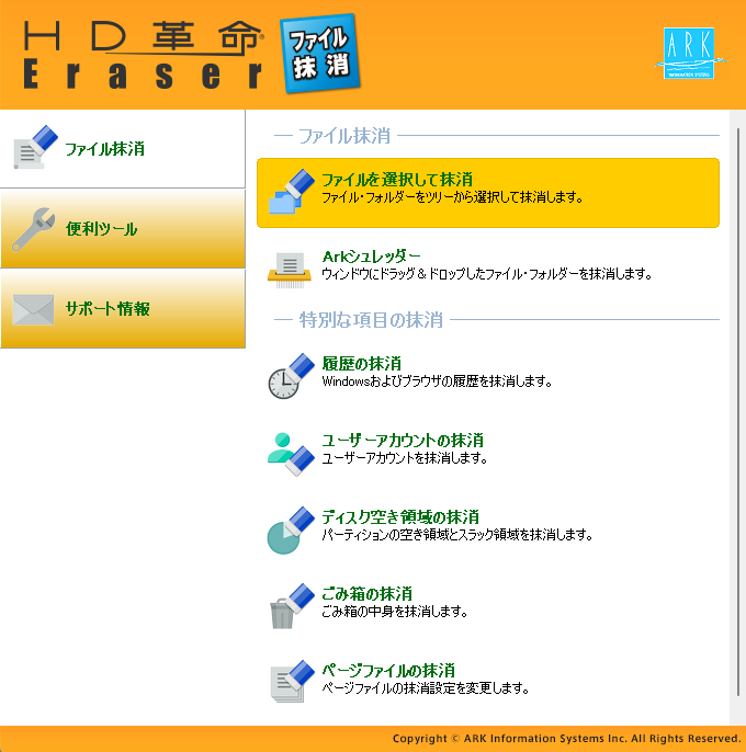 ●「HD革命」は株式会社アーク情報システムの登録商標です。「HD革命/Eraser Ver.8」の著作権は株式会社アーク情報システムが有してます。