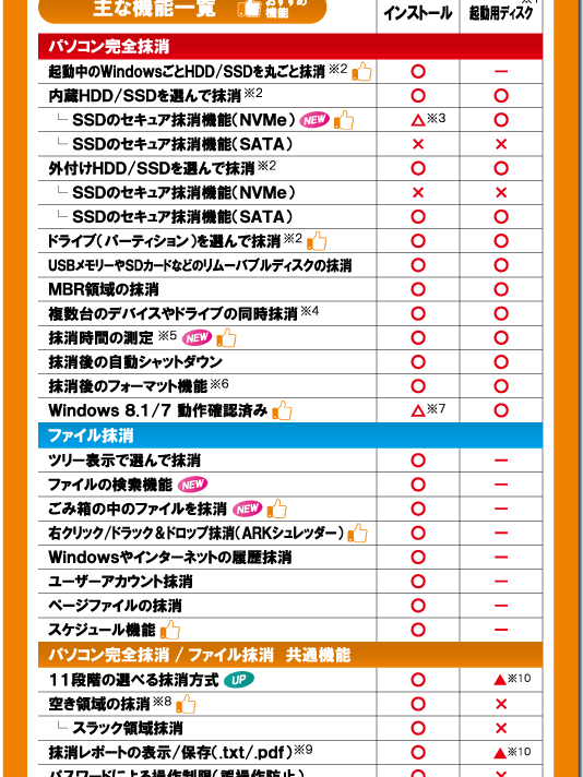 ※2 SSDはデバイスの特性により、抹消を行っても領域(ブロック)には断片的なデータが残る可能性