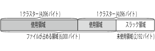 例えば、下図のように6,000 バイトのファイルを保存すると 2 クラスター