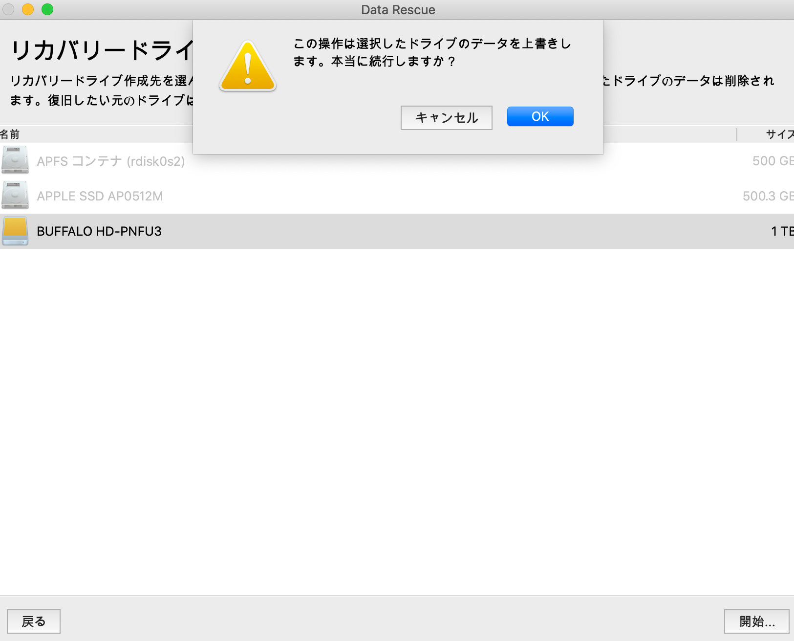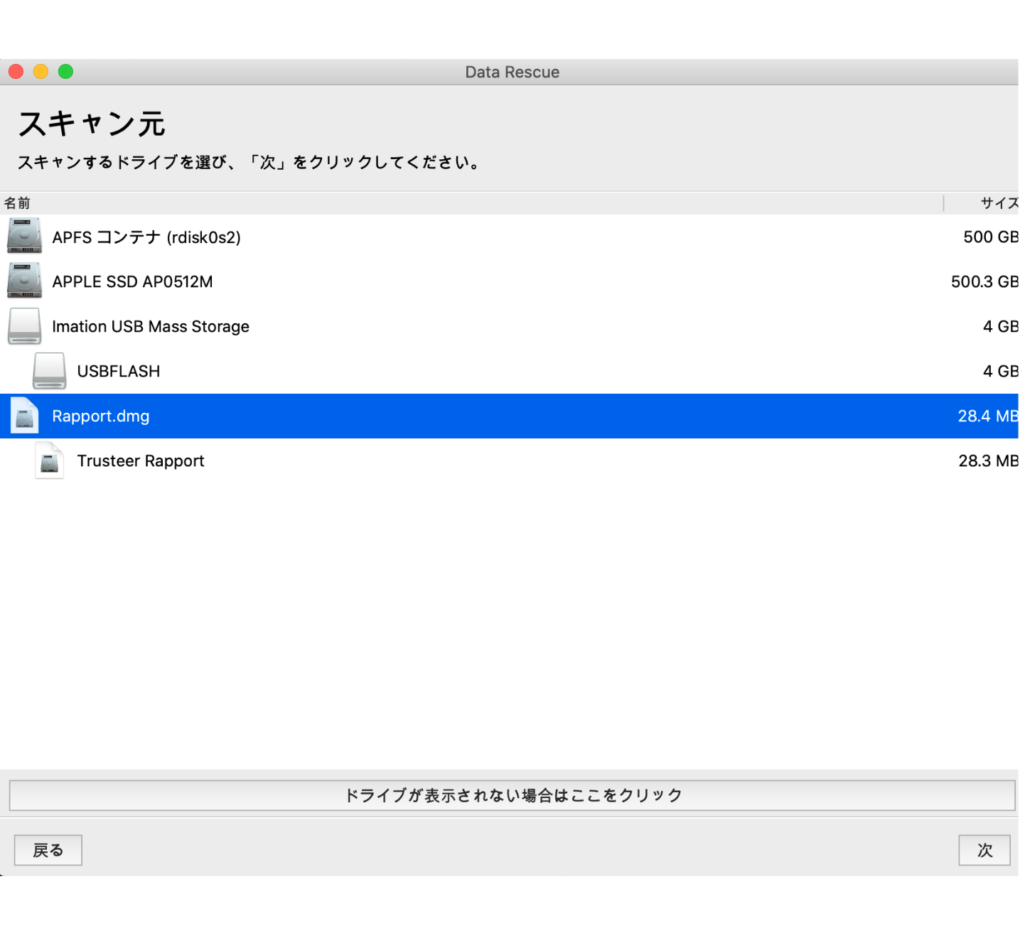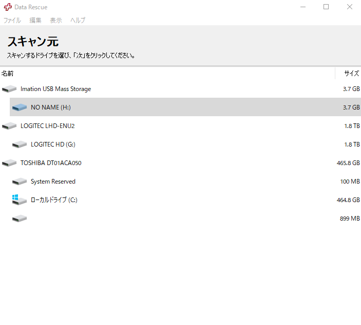 ※DataRescueから内蔵ドライブにアクセスすることは出来ません。