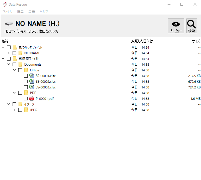 スキャンが完了したら、ファイルとフォルダーを復旧対象としてマークできます。