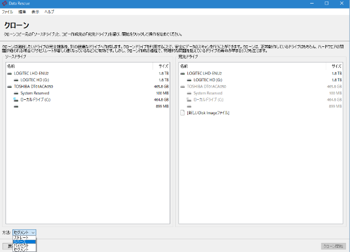 データレスキューは、ディスクイメージをスキャンする機能を持っています。データレスキューの複製プロセスを使用するか、サード パーティ製ソフトウェアを使用してディスク イメージを作成できます。