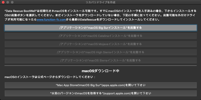 ※リカバリードライブにインストールする最新版のDataRescueはこちらをご確認ください。