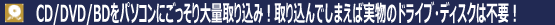 仮想CDとして一度取り込んでしまえば、CD/DVD/BDの入れ替えは不要です。大量のディスクをパソコンの横に積んでおく必要はありません。