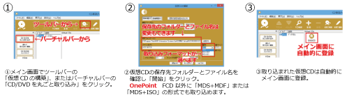 .FCD(「CD革命/Virtual」独自フォーマット)のほか、ISOフォーマットの取り込みにも対応しています。