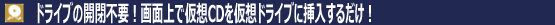 「CD革命/Virtual Ver.14」はCD/DVD/BDを丸ごとパソコンに取り込み、実物のディスクやドライブがなくても再生を可能にするソフトウェアです。●仮想ドライブとは? |